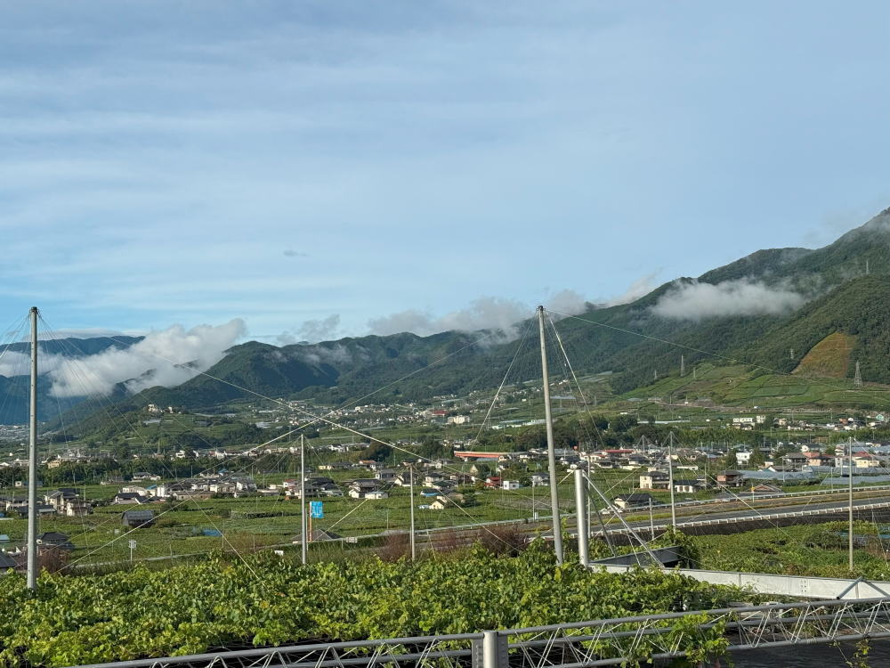 この時期は、シャインマスカットが最もおいしくなる最盛期を迎えています。前日の大雨が嘘のような秋晴れに恵まれ、今年は9月に入っても真夏日が続いていましたが、この週末は少し涼しさを感じられる気持ちの良い気候でしたね。