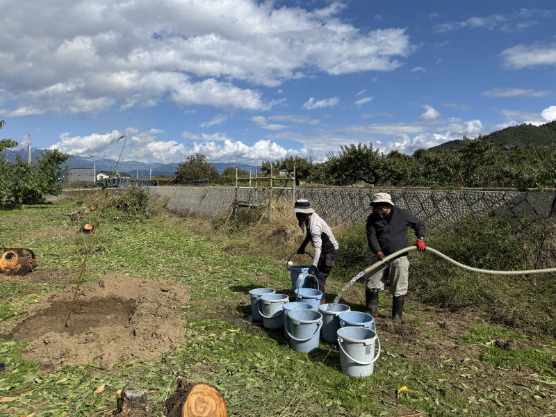 仕上げには、これからの成長を祈りながらたっぷりと水を与えました。水を含んだ土が根に密着し、これから迎える冬、そして春の芽吹きへの準備が整います。