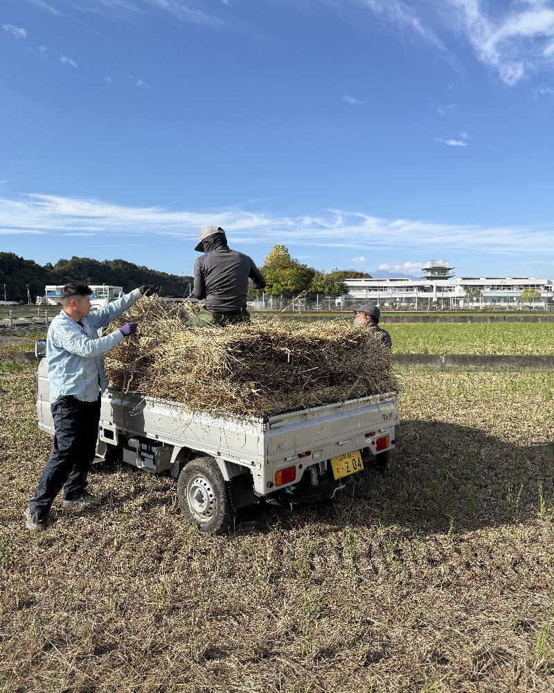 10月29日、私たちは韮崎の田んぼにいました。 毎年この時期の恒例行事となっている「藁(わら)取り」を行うためです。