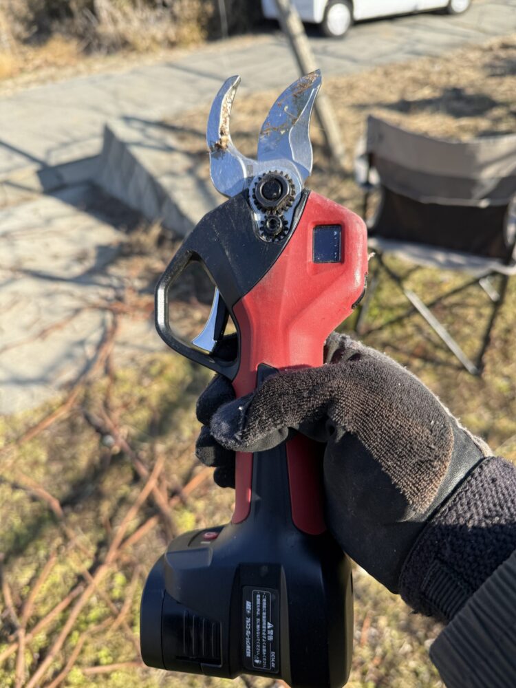 実は私、今から5年ほど前からひどい腱鞘炎に悩まされていました。 冬の剪定作業は、枝を何万回、いや何十万回と切るハードな仕事(;^_^。手動のハサミでは手首や指への負担が蓄積し、痛みで夜も眠れないほど辛い時期がありました。