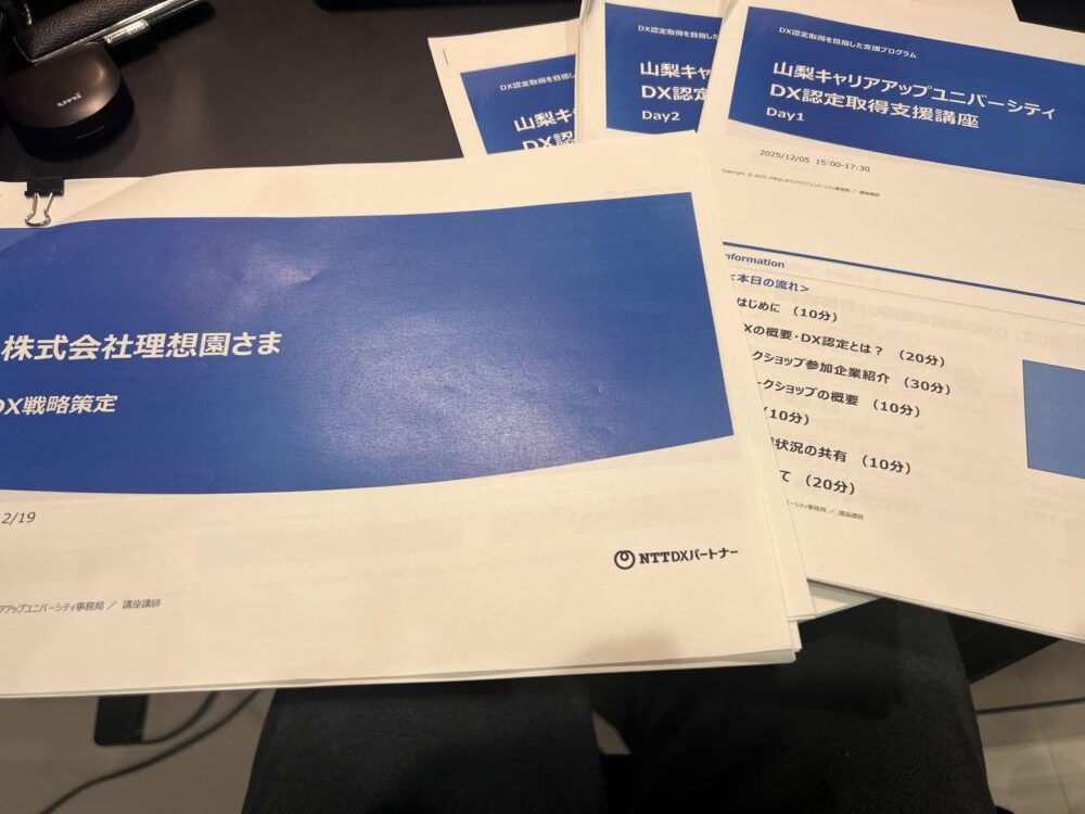 やまなしキャリアアップ・ユニバーシティ「DX認定講座」を受講しました!果樹園の未来を描く経営戦略( ..)φメモメモ